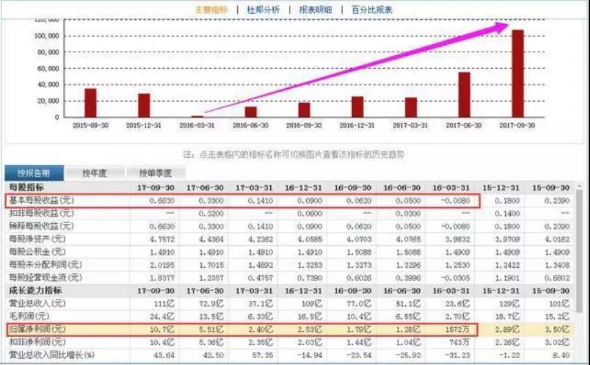 这一数据引发了大家的好奇心,翻看了鲁西化工过往的财报之后,从财务数据上看,鲁西化工2016年一季报的基本每股收益处于亏损状态,从2016年二季度开始扭亏,随后业绩逐步增长,2017年二季报和三季报可以看出鲁西化工业绩大爆发。从归属净利润看,从2016年一季报的1572万增长到2017年三季报的10.7亿元。